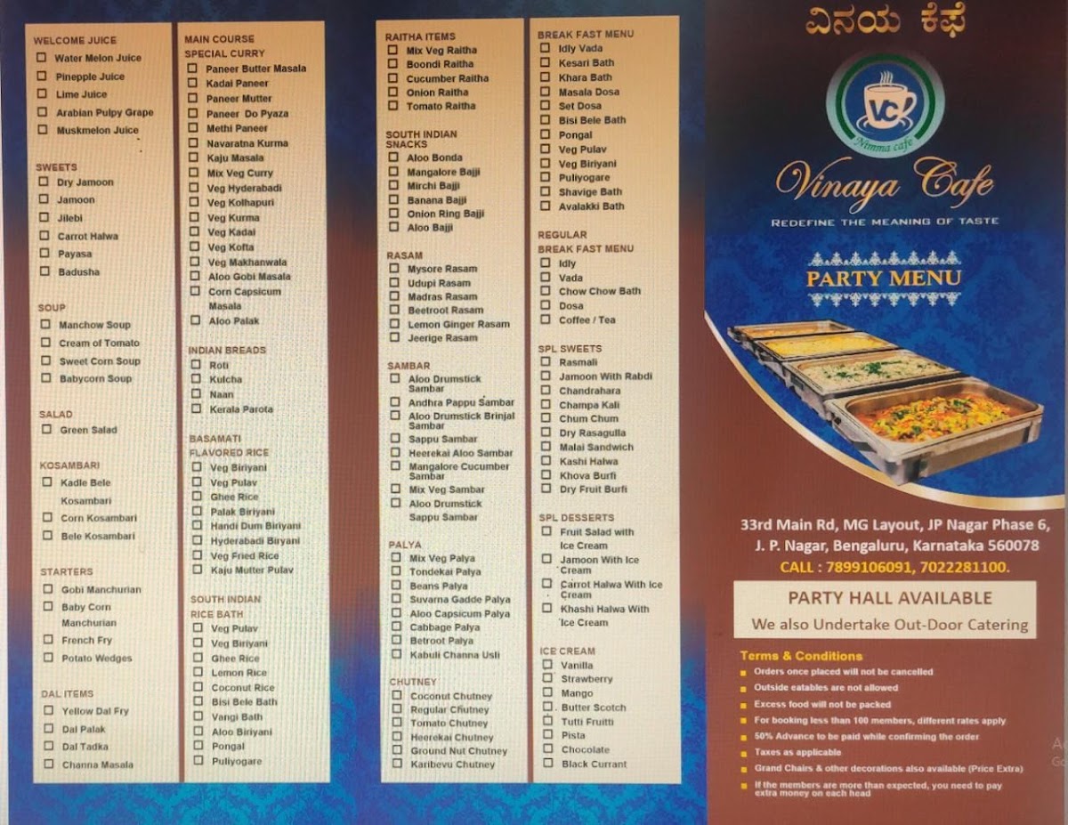 Welcome to Vinaya Café, a hidden gem nestled in the bustling JP Nagar of Bengaluru. This charming South Indian vegetarian eatery boasts a clean and hygienic environment, ensuring a delightful dining experience. The moment you step in, you’re greeted by a team of professional and friendly staff, dedicated to serving you with a smile.